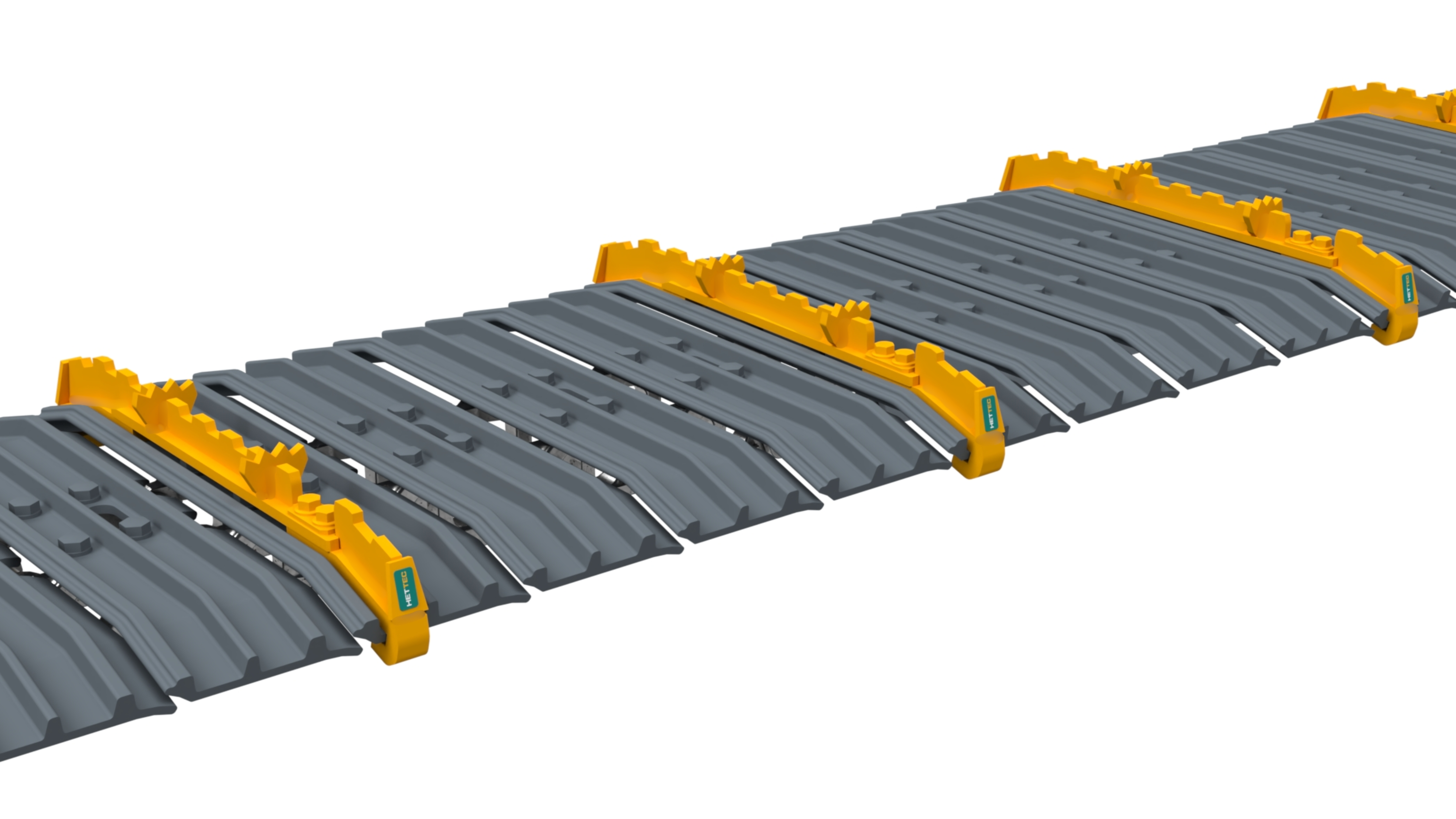 Die HETTEC® GEKKO Blade Extreme ist das Traktionssystem für extremste Geländebedingungen und wurde speziell für Raupenmaschinen mit ab Werk gebogenen Blade Runner 3-Steg Bodenplatten entwickelt.